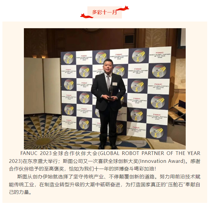 熱烈慶祝2023年斯圖再獲FANUC全球創(chuàng)新獎!